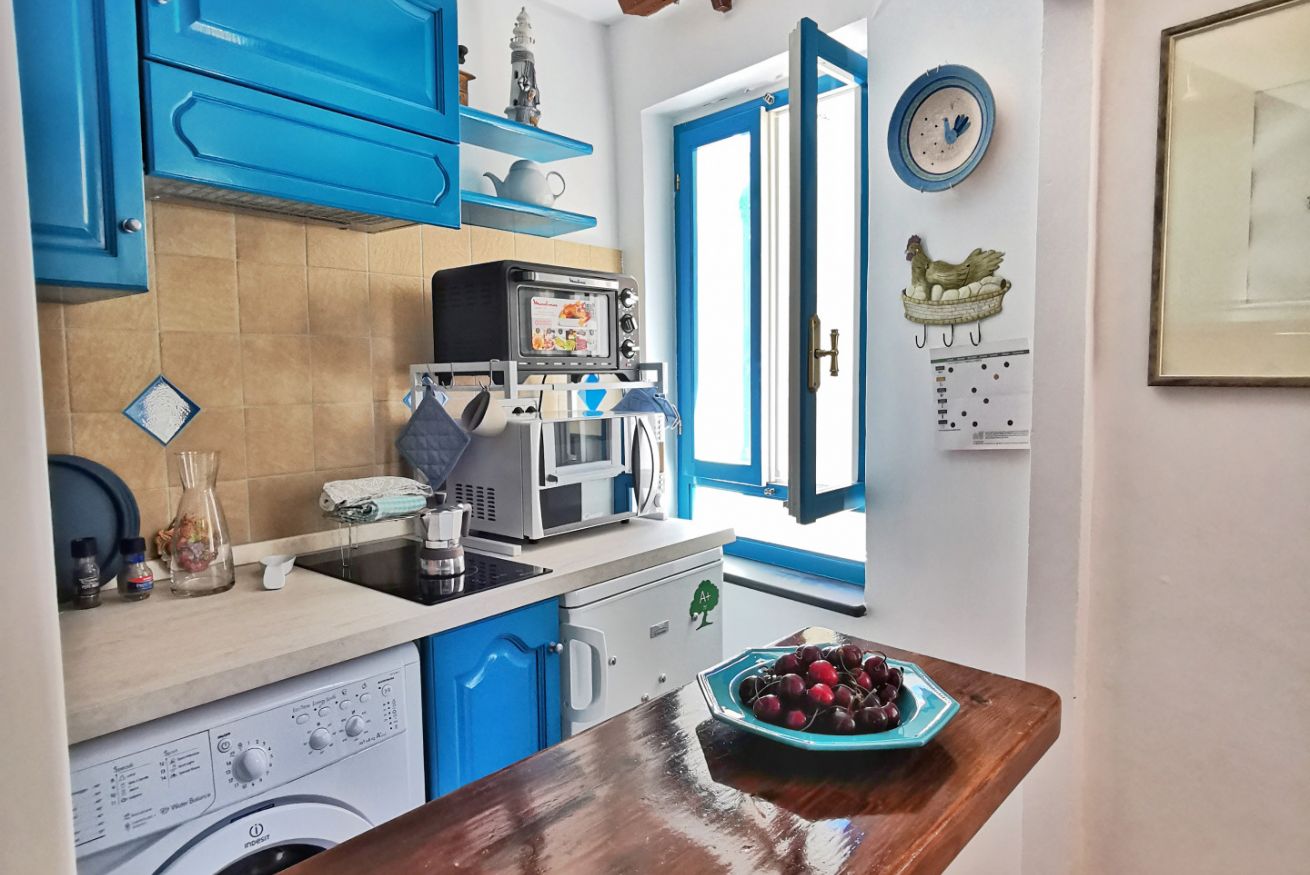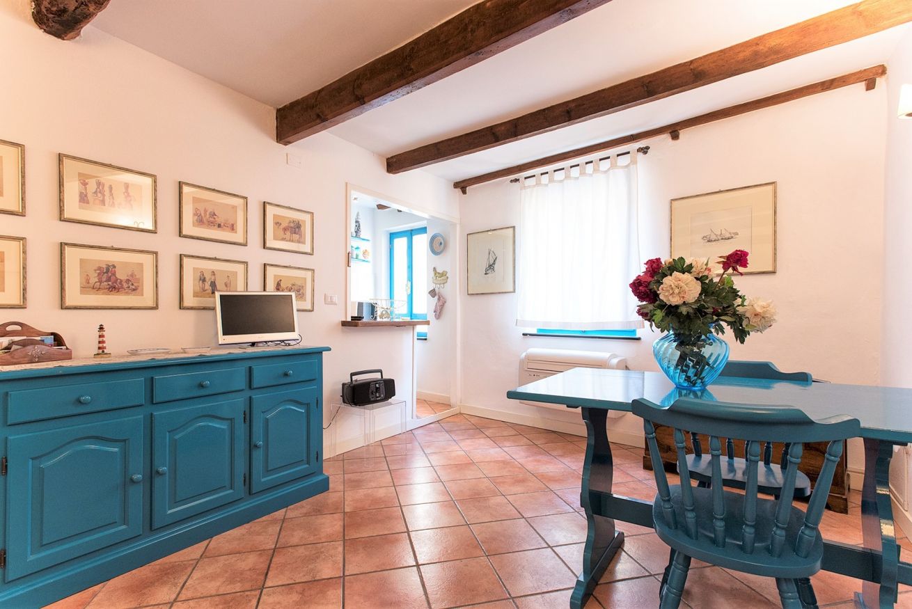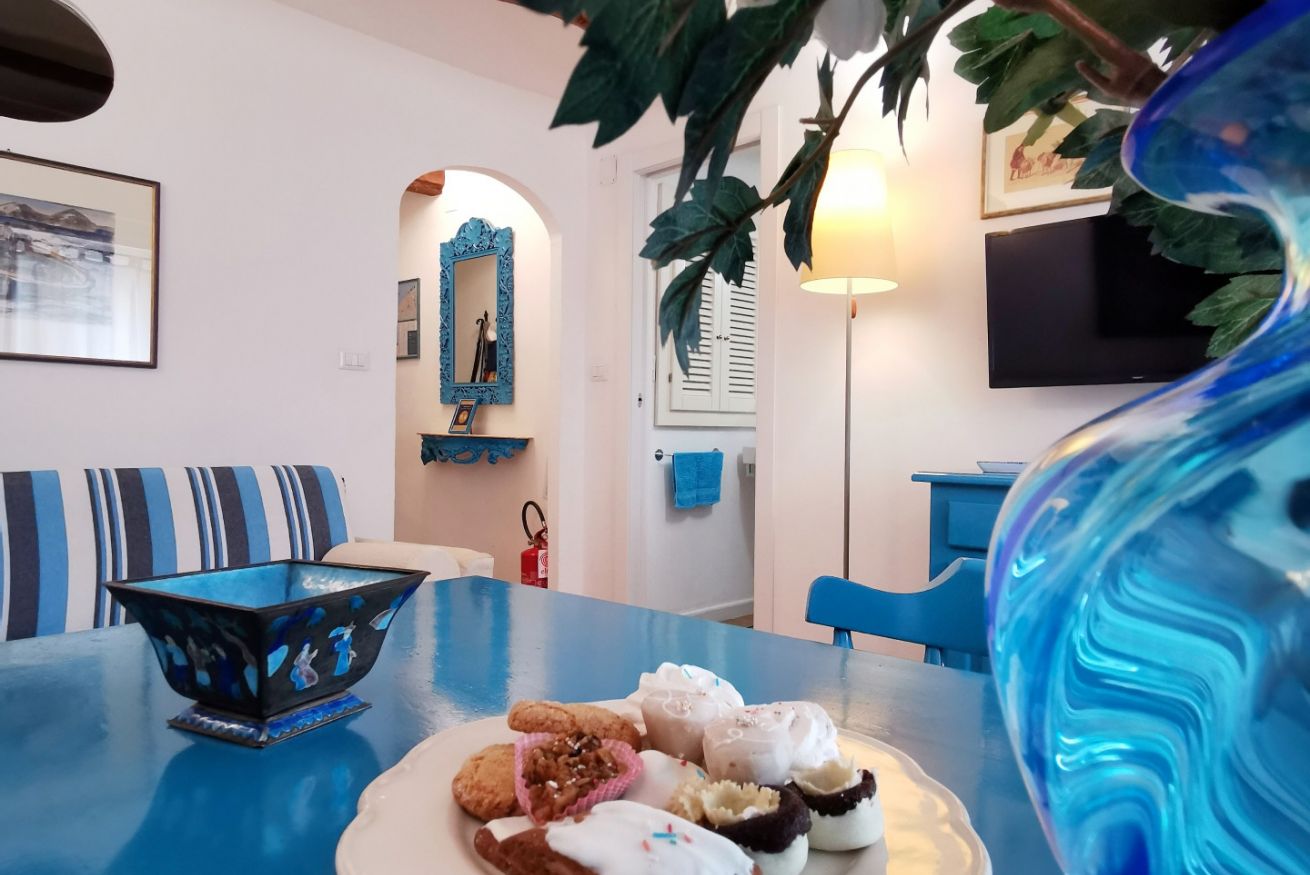 Confortevole nido turchese nel cuore del centro storico. Soggiorno con divano letto matrimoniale, rifinito angolo cottura con finestra e lavatrice; camera "alcova" matrimoniale con tenda e oblò; bagno e cucina rinnovati nel 2020. SECONDO PIANO No ascensore, scale ripide ma nuove.