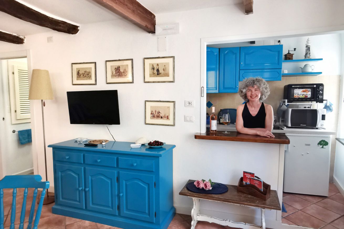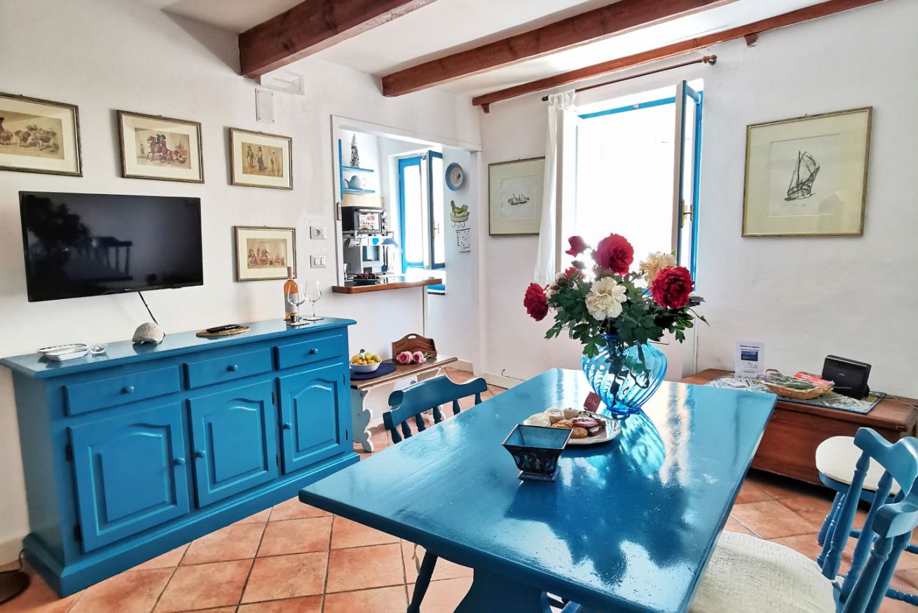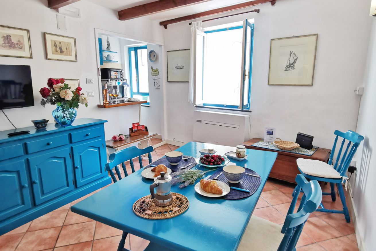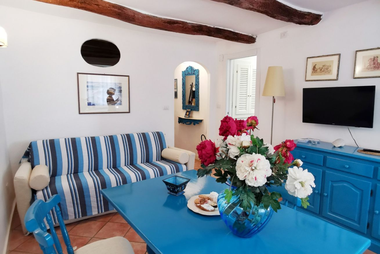 Confortevole nido turchese nel cuore del centro storico. Soggiorno con divano letto matrimoniale, rifinito angolo cottura con finestra e lavatrice; camera "alcova" matrimoniale con tenda e oblò; bagno e cucina rinnovati nel 2020. SECONDO PIANO No ascensore, scale ripide ma nuove.