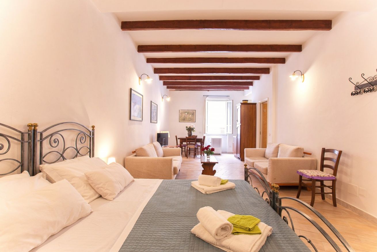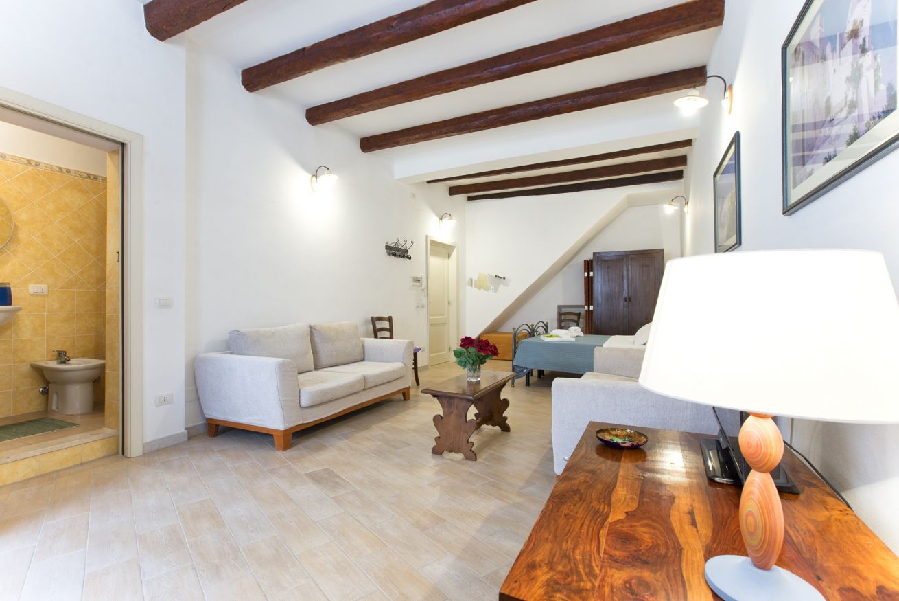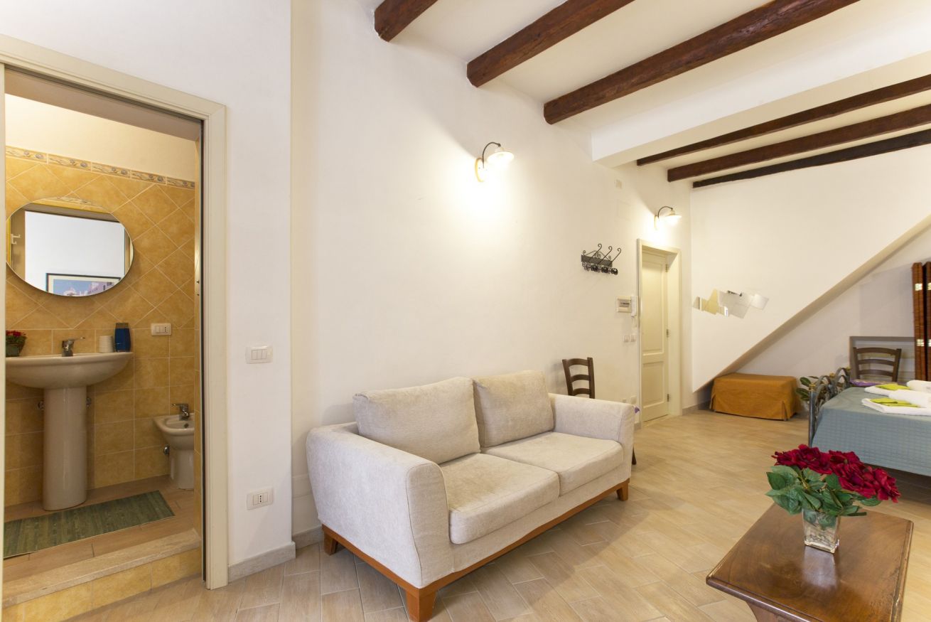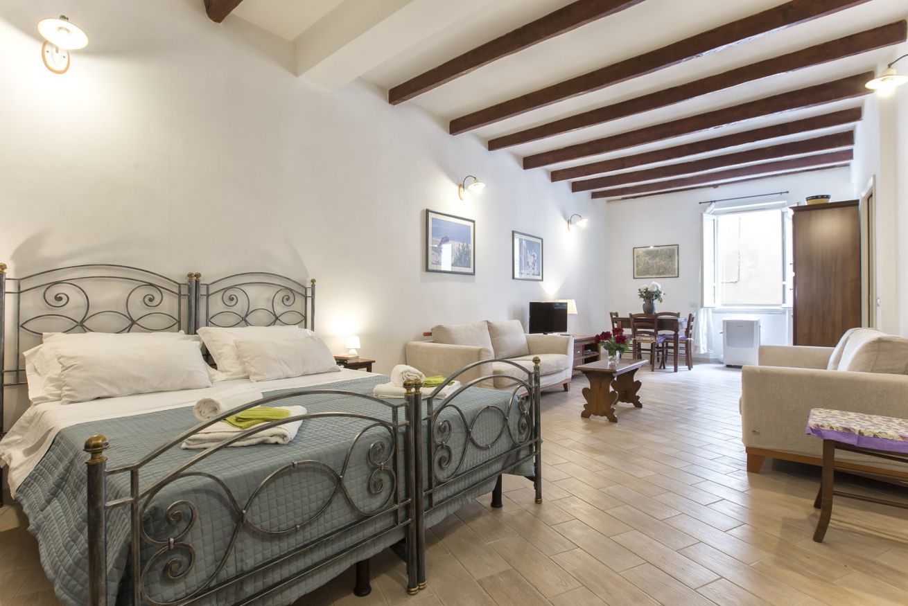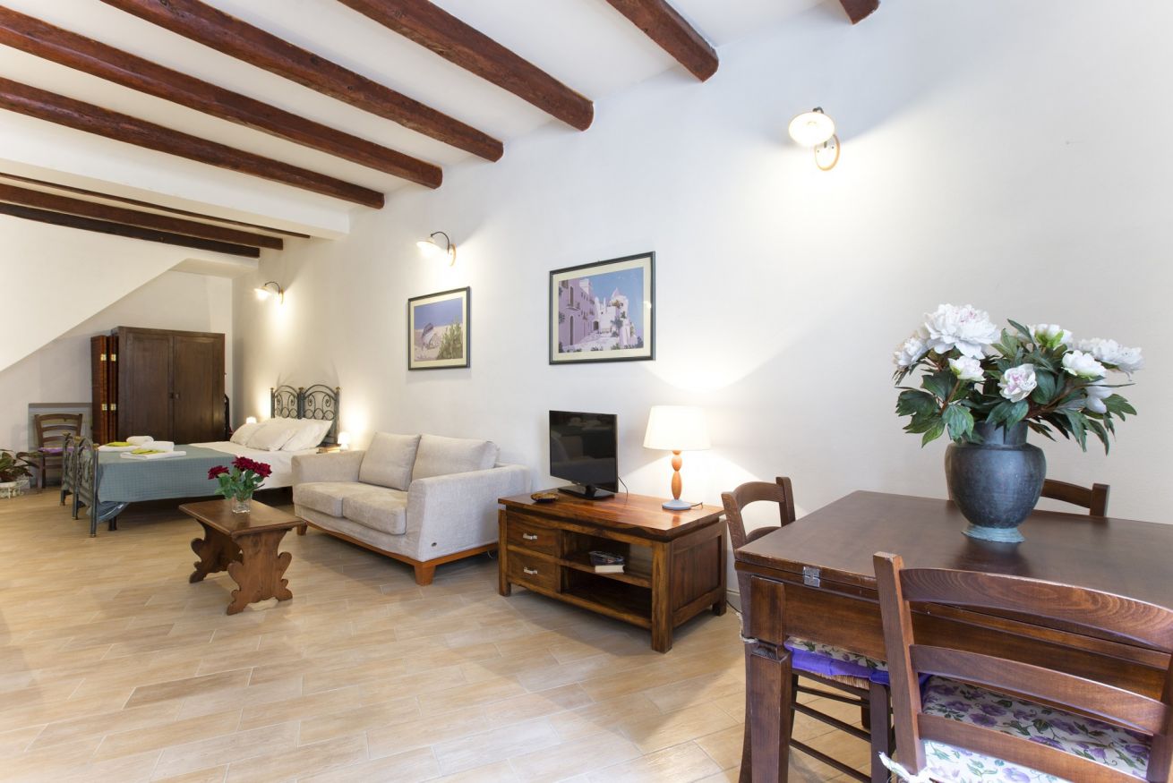 Ampio e romantico open space nel centro città, completamente rinnovato, con due grandi finestre e doppi vetri. Cucina attrezzata, bagno con cabina doccia. Spazio ideale per una vacanza rilassante e confortevole. SECONDO PIANO SENZA ascensore (1 rampa di scale ripida ma in ottime condizioni).